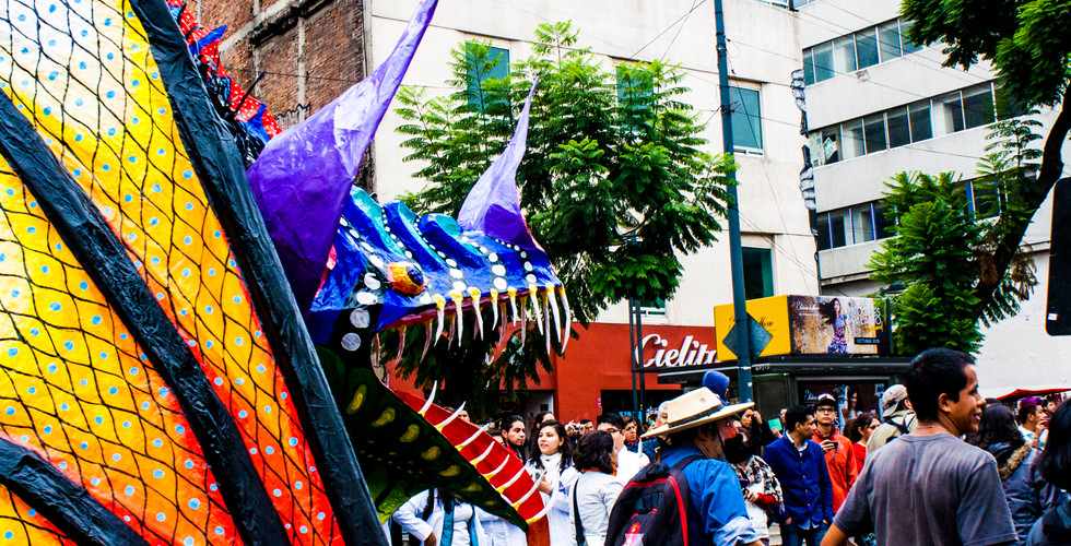 Escaramuzas y charros, vivos y muertos pasaban bailando y cantando, alentando y divirtiendo a la gente, también luchadores y un grupo de aborígenes africanos que no entendimos muy bien que hacían ahí pero que igual se integraron a la fiesta, arlequines y calacas, demonios que acompañaban a los coloridos alebrijes que parecían disfrutar al igual que todos los que nos encontrábamos ahí y así desfilaron 221 alebrijes provenientes de cada rincón del país y de la imaginación. Al final unos alebrijes de amarillo pollo, de esos de los que aletean en los complicados cruces de nuestra ciudad nos alentaban a quitarnos de las calles para que los coches pusieran pasar, al final, regresaba cada quién a su vida pero con un toque colorido a pesar de que las nubes seguían cubriendo el cielo capitalino.